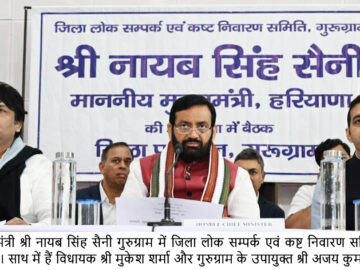 हरियाणा के मुख्यमंत्री श्री नायब सिंह सैनी गुरुग्राम में जिला लोक सम्पर्क एवं कष्ट निवारण समिति की बैठक की अध्यक्षता करते हुए। साथ में हैं विधायक Read More