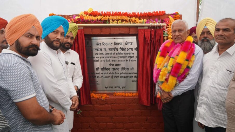 ਕੈਬਨਿਟ ਮੰਤਰੀ ਬਰਿੰਦਰ ਕੁਮਾਰ ਗੋਇਲ ਨੇ ਮੂਨਕ-ਪਾਤੜਾਂ ਸੜਕ ਦੀ ਕਰੀਬ 10 ਕਰੋੜ 80 ਲੱਖ ਰੁਪਏ ਦੀ ਲਾਗਤ ਨਾਲ ਅਪਗਰੇਡਸ਼ਨ ਦਾ ਨੀਂਹ ਪੱਥਰ ਰੱਖਿਆ