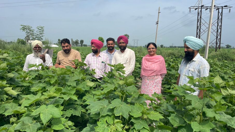 ਪੰਜਾਬ ਸਰਕਾਰ ਵੱਲੋਂ ਖੇਤੀ ਵਿਭਿੰਨਤਾ ਅਧੀਨ ਵੱਧ ਤੋਂ ਵੱਧ ਰਕਬੇ ਨੂੰ ਨਰਮੇ ਦੀ ਫਸਲ ਨਾਲ ਕਵਰ ਕਰਨ ਅਤੇ ਇਸਨੂੰ ਕਾਮਯਾਬ ਬਣਾਉਣ ਲਈ ਯਤਨ ਕੀਤੇ ਜਾ ਰਹੇ ਹਨ। ਨਰਮੇ ਦੀ ਫਸਲ ਤੇ ਹਰੇ ਤੇਲੇ ਦੇ ਹਮਲੇ ਦਾ ਨਿਰੀਖਣ ਕਰਨ ਲਈ ਜ਼ਿਲ੍ਹਾ ਮੋਗਾ ਵਿਚ ਖੇਤੀਬਾੜੀ ਵਿਭਾਗ ਵੱਲੋਂ ਲਗਾਤਾਰ ਖੇਤਾਂ ਦਾ ਦੌਰਾ ਕੀਤਾ ਜਾ ਰਿਹਾ ਹੈ। ਇਸੇ ਕੜੀ ਤਹਿਤ ਮੁੱਖ ਖੇਤੀਬਾੜੀ ਅਫਸਰ, ਮੋਗਾ ਡਾ: ਗੁਰਪ੍ਰੀਤ ਸਿੰਘ ਦੀ ਅਗਵਾਈ ਹੇਠ ਡਾ. ਸੁਖਰਾਜ ਕੌਰ ਖੇਤੀਬਾੜੀ ਅਫਸਰ (ਸਦਰਮੁਕਾਮ) ਮੋਗਾ ਅਤੇ ਸਹਾਇਕ ਪੌਦਾ ਸੁਰੱਖਿਆ ਅਫਸਰ, ਮੋਗਾ ਵੱਲੋਂ ਪਿੰਡ ਦਾਰਾਪੁਰ ਦੇ ਅਗਾਂਹਵਧੂ ਕਿਸਾਨ ਰਵਦੀਪ ਸਿੰਘ ਸੰਘਾ ਵੱਲੋਂ ਬੀਜੇ ਗਏ ਨਰਮੇ ਦੇ ਪ੍ਰਦਰਸ਼ਨੀ ਪਲਾਟ ਦਾ ਦੌਰਾ ਕੀਤਾ।