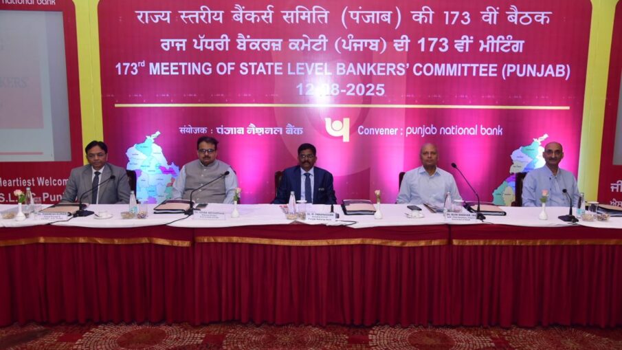 ਰਾਜ ਪੱਧਰੀ ਬੈਂਕਰਸ ਕਮੇਟੀ (SLBC), ਪੰਜਾਬ ਦੀ 173ਵੀਂ ਮੀਟਿੰਗ ਪੰਜਾਬ ਨੈਸ਼ਨਲ ਬੈਂਕ ਦੇ ਕਾਰਜਕਾਰੀ ਨਿਦੇਸ਼ਕ  ਐੱਮ. ਪਰਮਸਿਵਮ  ਦੀ ਪ੍ਰਧਾਨਗੀ ਹੇਠ ਹੋਟਲ ਮਾਊਂਟ ਵਿਊ, ਸੈਕਟਰ-10, ਚੰਡੀਗੜ੍ਹ ਵਿਖੇ ਹੋਈ। ਮੀਟਿੰਗ ਵਿੱਚ ਜੂਨ 2025 ਤਿਮਾਹੀ ਤੱਕ ਦੀ ਪ੍ਰਗਤੀ ਦੀ ਸਮੀਖਿਆ ਕੀਤੀ ਗਈ।