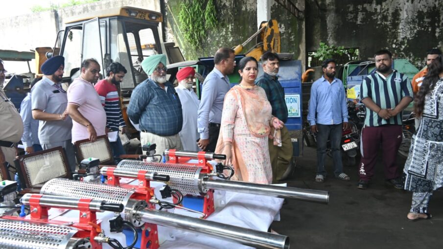 ਸ਼ਹਿਰ ਭਰ ਵਿੱਚ ਫੋਗਿੰਗ ਨੂੰ ਯਕੀਨੀ ਬਣਾਉਣ ਲਈ, ਮੇਅਰ ਪ੍ਰਿੰਸੀਪਲ ਇੰਦਰਜੀਤ ਕੌਰ ਨੇ ਸ਼ੁੱਕਰਵਾਰ ਨੂੰ ਹੰਬੜਾਂ ਰੋਡ ‘ਤੇ ਨਗਰ ਨਿਗਮ ਦੀ ਵਰਕਸ਼ਾਪ ਦੇ ਦੌਰੇ ਦੌਰਾਨ ਸਟਾਫ ਨੂੰ 20 ਨਵੀਆਂ ਹੈਂਡੀ/ਮਿੰਨੀ ਫੋਗਿੰਗ ਮਸ਼ੀਨਾਂ ਸੌਂਪੀਆਂ।