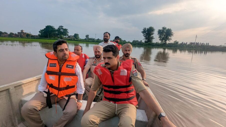 ਡਿਪਟੀ ਕਮਿਸ਼ਨਰ ਸ਼੍ਰੀ ਸਾਗਰ ਸੇਤੀਆ ਅਤੇ ਐਸ.ਐਸ.ਪੀ. ਸ਼੍ਰੀ ਅਜੈ ਗਾਂਧੀ ਨੇ ਸਤਲੁਜ ਦਰਿਆ ਦੇ ਨਾਲ ਲੱਗਦੇ ਪਿੰਡ ਰੇਹੜਵਾਂ, ਸੈਦ ਜਲਾਲਪੁਰ, ਸ਼ੇਰਪੁਰ ਤਾਇਬਾਂ, ਸ਼ੇਰੇਵਾਲਾ, ਮੰਦਰ ਕਲਾਂ, ਰਾਊਵਾਲਾ, ਸੰਘੇੜਾ ਆਦਿ ਵਿਖੇ ਪਾਣੀ ਦੀ ਸਥਿਤੀ ਦਾ ਜਾਇਜਾ ਲਿਆ ਅਤੇ ਕਿਸ਼ਤੀ ਵਿੱਚ ਸਵਾਰ ਹੋ ਕੇ ਪਾਣੀ ਨਾਲ ਪ੍ਰਭਾਵਿਤ ਲੋਕਾਂ ਦੇ ਘਰਾਂ ਤੱਕ ਪਹੁੰਚ ਕਰਕੇ ਲੋਕਾਂ ਨੂੰ ਜ਼ਿਲ੍ਹਾ ਪ੍ਰਸ਼ਾਸ਼ਨ ਵੱਲੋਂ ਸੁਰੱਖਿਅਤ ਥਾਵਾਂ ਤੇ ਬਣਾਏ ਰਾਹਤ ਕੈਂਪਾਂ ਵਿੱਚ ਜਾਣ ਦੀ ਅਪੀਲ ਕੀਤੀ। ਉਹਨਾਂ ਪ੍ਰਭਾਵਿਤ ਪਰਿਵਾਰਾਂ ਨਾਲ ਮੁਲਾਕਾਤ ਕੀਤੀ ਅਤੇ ਉਹਨਾਂ ਦੀਆਂ ਸਮੱਸਿਆਵਾਂ ਸੁਣ ਕੇ ਪ੍ਰਸ਼ਾਸ਼ਨ ਵੱਲੋਂ ਹਰ ਸੰਭਵ ਸਹਾਇਤਾ ਦੇਣ ਦਾ ਭਰੋਸਾ ਦਿੱਤਾ। ਇਸ ਮੌਕੇ ਉਹਨਾਂ ਨਾਲ ਵਧੀਕ ਡਿਪਟੀ ਕਮਿਸ਼ਨਰ (ਜ) ਸ਼੍ਰੀਮਤੀ ਚਾਰੂਮਿਤਾ, ਐਸ.ਡੀ.ਐਮ. ਧਰਮਕੋਟ ਸ਼੍ਰੀ ਹਿਤੇਸ਼ਵੀਰ ਗੁਪਤਾ ਸਮੇਤ ਹੋਰ ਅਧਿਕਾਰੀ ਮੌਜੂਦ ਸਨ।