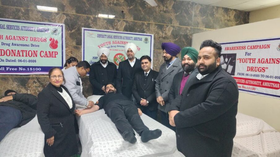 The District Legal Services Authority (DLSA), Amritsar, in collaboration with the Civil Surgeon, Amritsar, successfully organized a Blood Donation Camp on 06.01.2026 at the Office of the District Bar Association, District Court Complex, Amritsar, from 11:00 AM to 02:30 PM. The camp was organized on the occasion of the culmination of the “Youth Against Drugs” Campaign, with the objective of spreading awareness against drug abuse and promoting voluntary blood donation as a vital humanitarian service.