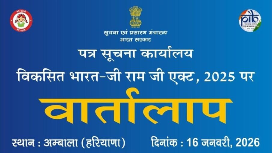 ਸੂਚਨਾ ਅਤੇ ਪ੍ਰਸਾਰਣ ਮੰਤਰਾਲੇ, ਭਾਰਤ ਸਰਕਾਰ ਦੇ ਪ੍ਰੈੱਸ ਇਨਫਰਮੇਸ਼ਨ ਬਿਊਰੋ (ਪੀਆਈਬੀ), ਚੰਡੀਗੜ੍ਹ ਦੁਆਰਾ ਐਡੀਸ਼ਨਲ ਡਾਇਰੈਕਟਰ ਜਨਰਲ ਵਿਵੇਕ ਵੈਭਵ ਦੀ ਅਗਵਾਈ ਹੇਠ, 16 ਜਨਵਰੀ ਨੂੰ ਸਥਾਨਕ ਪੱਤਰਕਾਰਾਂ ਲਈ ਅੰਬਾਲਾ ਦੇ ਪੰਚਾਇਤ ਭਵਨ ਵਿਖੇ ਇੱਕ ਮੀਡੀਆ ਵਰਕਸ਼ਾਪ, “ਵਾਰਤਾਲਾਪ” ਦਾ ਆਯੋਜਨ ਕੀਤਾ ਜਾਵੇਗਾ।
