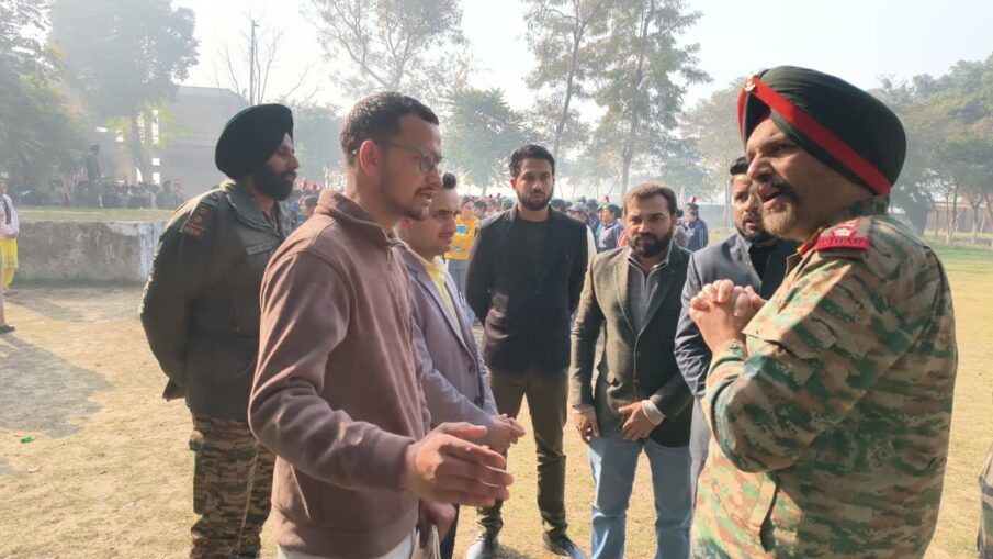 On the second day of the Yuva Aapda Mitra programme being conducted at Baba Kuma Engineering College, Colonel Pawandeep Singh (Sena Medal) visited the training camp. He interacted with the entire MGSIPA team and NCC volunteers and briefed them about the camp.